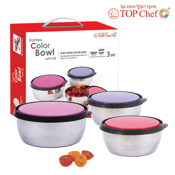- 탑셰프 스테인레스 컬러찬통 3종세트(대1중2)