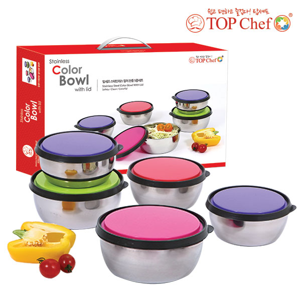 - 탑셰프 스테인레스 컬러찬통 5종세트(대2중3)