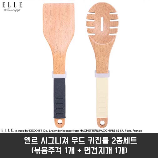 - [ELLE] 엘르 시그니쳐 우드 키친툴 2종세트 (볶음주걱 1개 + 면건지개 1개)