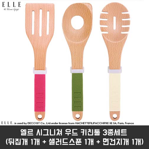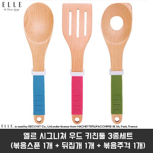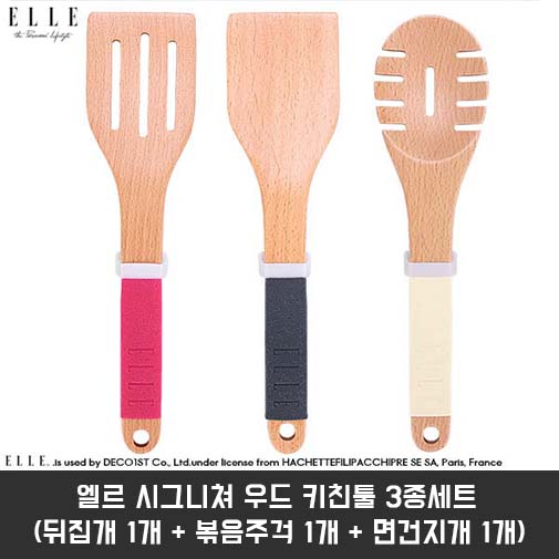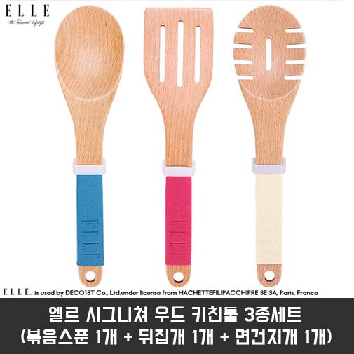 - [ELLE] 엘르 시그니쳐 우드 키친툴 3종세트 (볶음스푼 1개 + 뒤집개 1개 + 면건지…