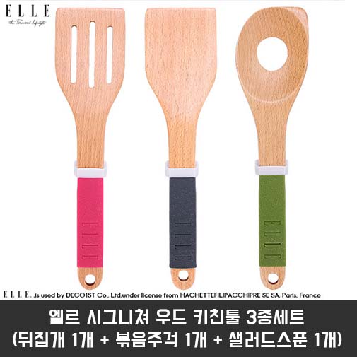 - [ELLE] 엘르 시그니쳐 우드 키친툴 3종세트 (뒤집개 1개 + 볶음주걱 1개 + 샐러드…