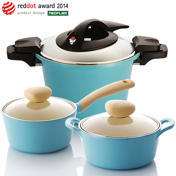 - [네오플램] 프리미엄 냄비 레트로 저압냄비 3종세트 26저압+18편수+18양수 [레드닷 디…