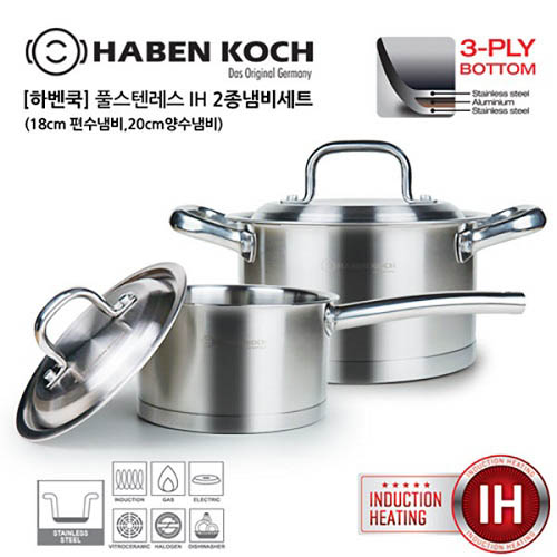 - [하벤쿡] IH스텐 2종냄비세트(18cm편수,20cm양수)