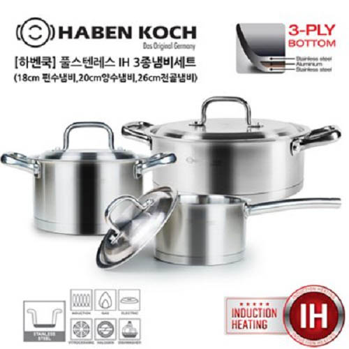 - [하벤쿡] IH스텐 3종냄비세트(18cm편수,20cm양수,26전골냄비)