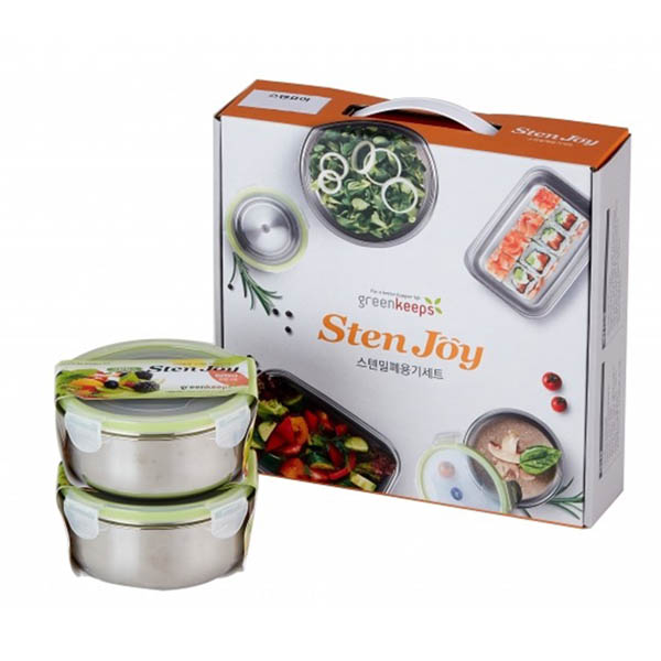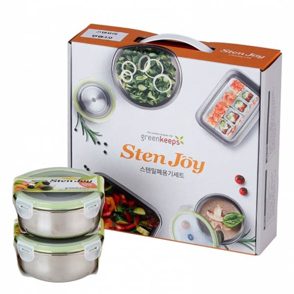 - [스텐조이] 스텐 밀폐용기 원형2호 2조세트 GK-STS-C04-2