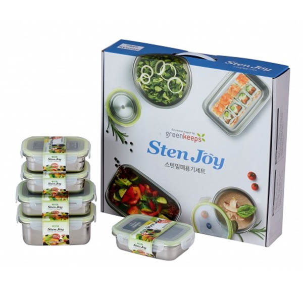 - [스텐조이] 스텐 밀폐용기 직사각5조 세트 GK-STS-R10