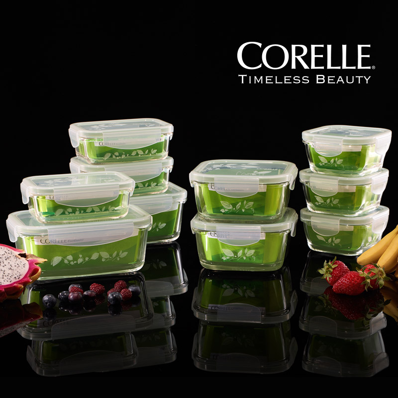 - [코렐]그린브리즈 밀폐용기 혼합10조(20P) 직사각400ml*3+1100ml*2+정사각 …