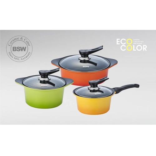 - [BSW] 에코칼라 세라믹냄비 3종세트/편수18cm, 양수20cm