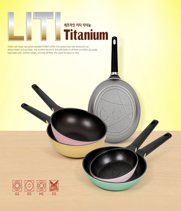 - [셰프라인] 리빙앤쿡 티타늄 후라이 팬 4종(팬20cm,팬28cm,팬30cm,궁중30cm)
