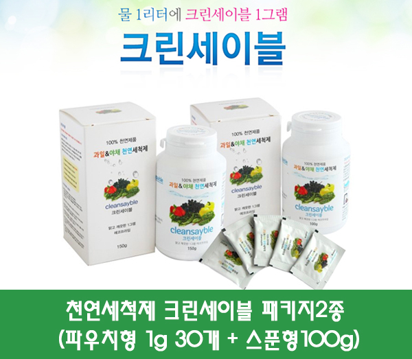 - 천연세척제 크린세이블 패키지2종 (파우치형 1g*30개+스푼형100g)