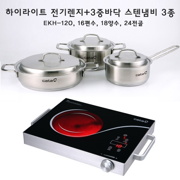 - [카타] 유럽명품 CATA 하이라이트 전기렌지(EKH-120)+ 3중바닥 스텐냄비 3종 세…