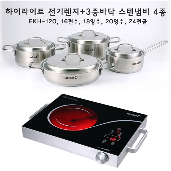 - [카타] 유럽명품 CATA 하이라이트 전기렌지(EKH-120)+ 3중바닥 스텐냄비 4종 세…