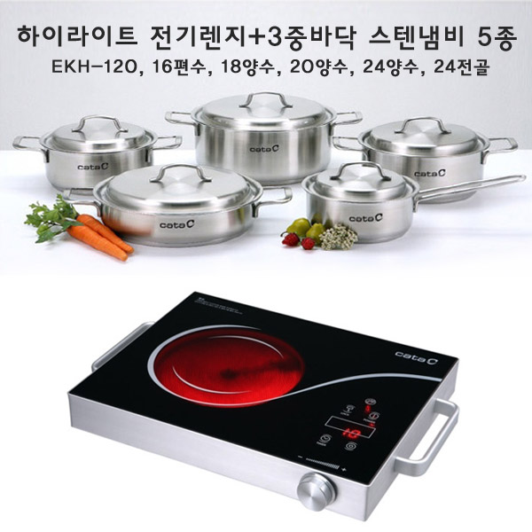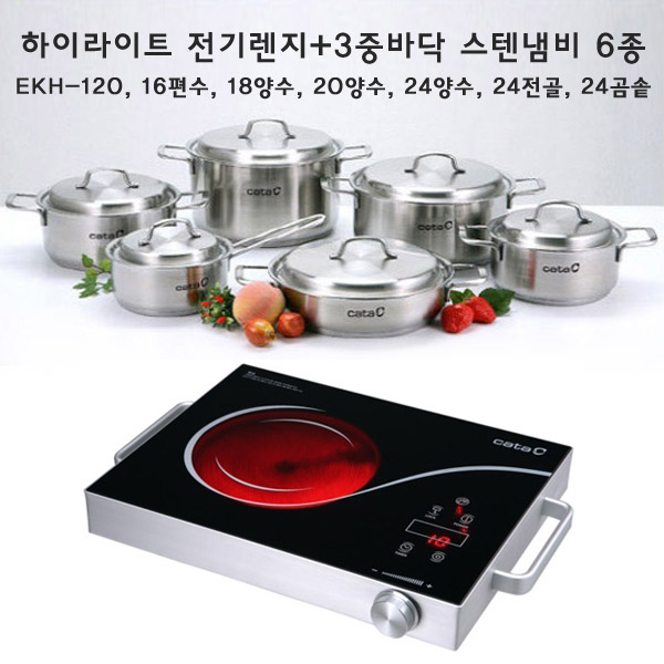 - [카타] 유럽명품 CATA 하이라이트 전기렌지(EKH-120)+ 3중바닥 스텐냄비 6종 세…