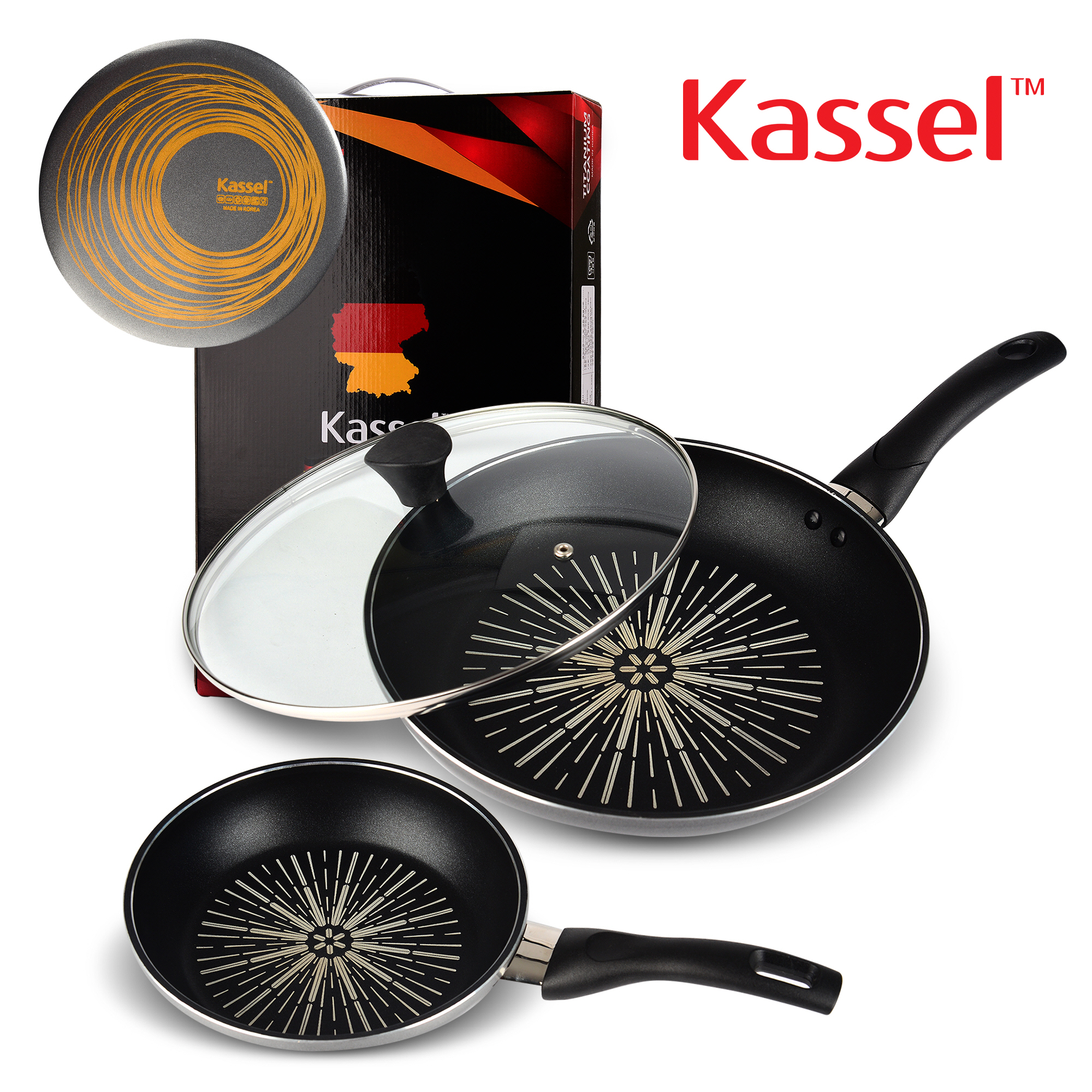 - [Kassel ] 카셀 단조형 티타늄 후라이팬 3종A세트 [후20cm+후28cm+유리뚜껑2…