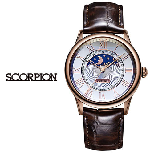 - 스콜피온 남성 가죽 손목시계 SP3323L-RG