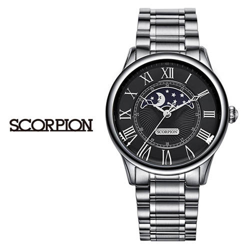 - 스콜피온 남성 가죽 손목시계 SP3311L-BK