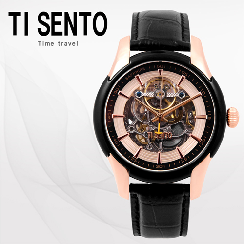 - [티센토]스켈레톤 오토매틱 TS60011BROBK 남성_블랙가죽