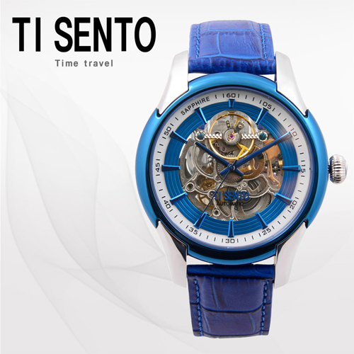 - [티센토]스켈레톤 오토매틱 TS60011BUBU 남성_블루가죽