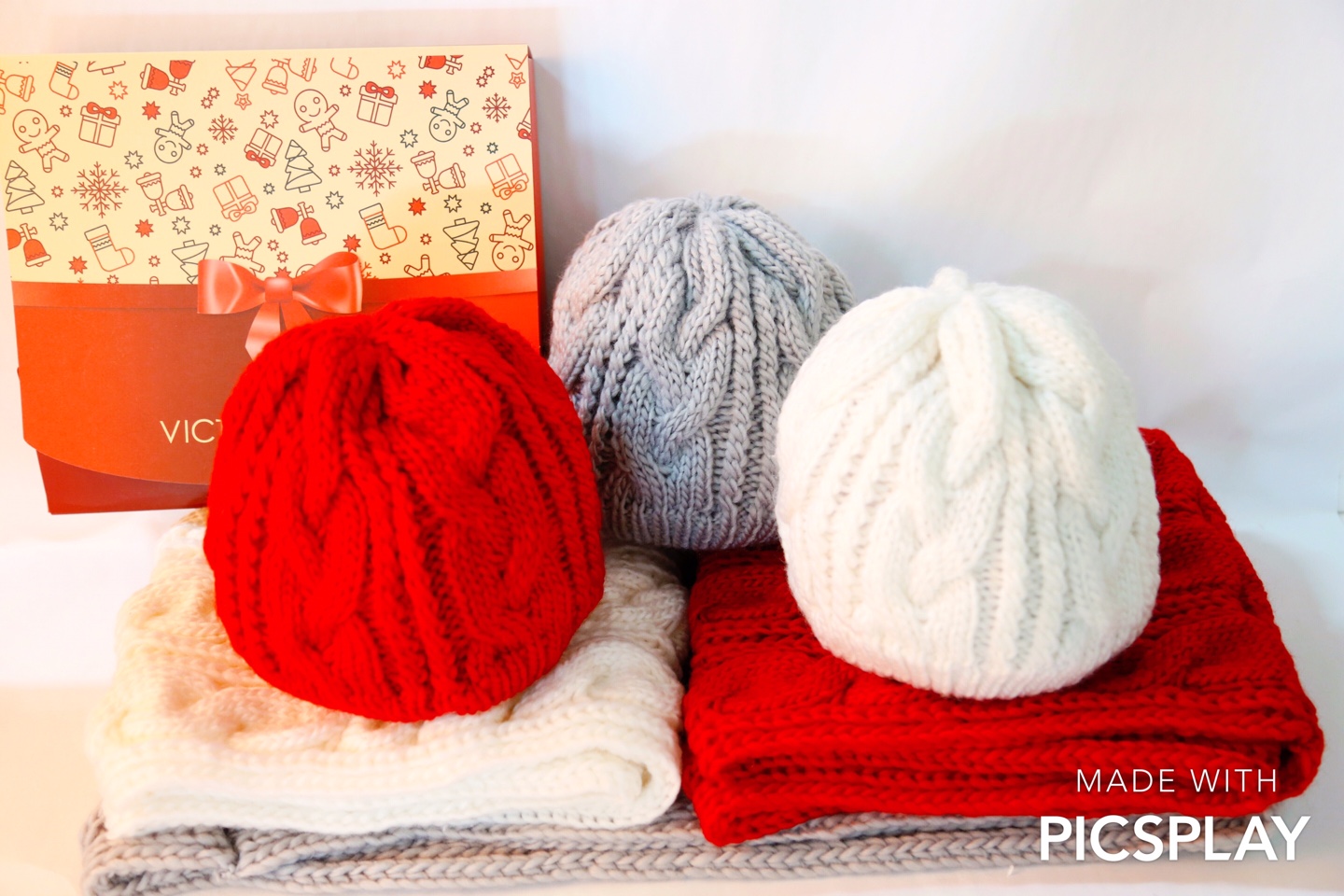 - 빅토리아레인 꽈베기 니트모자&워머세트