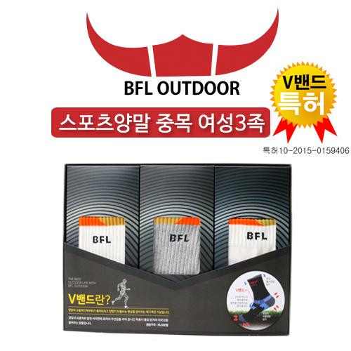 - 버팔로 V밴드 기능성 스포츠양말 중목 여성3족 세트/색상랜덤
