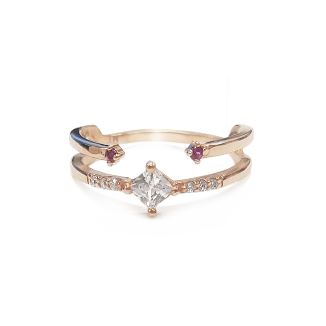 - 14K 로제 모먼트 큐빅반지 RKQ17036