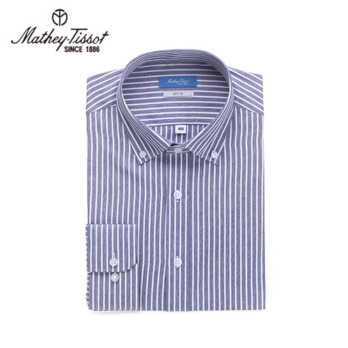 - Mathey-Tissot 캐주얼 셔츠 멜란지 선염 스트라이프 블루