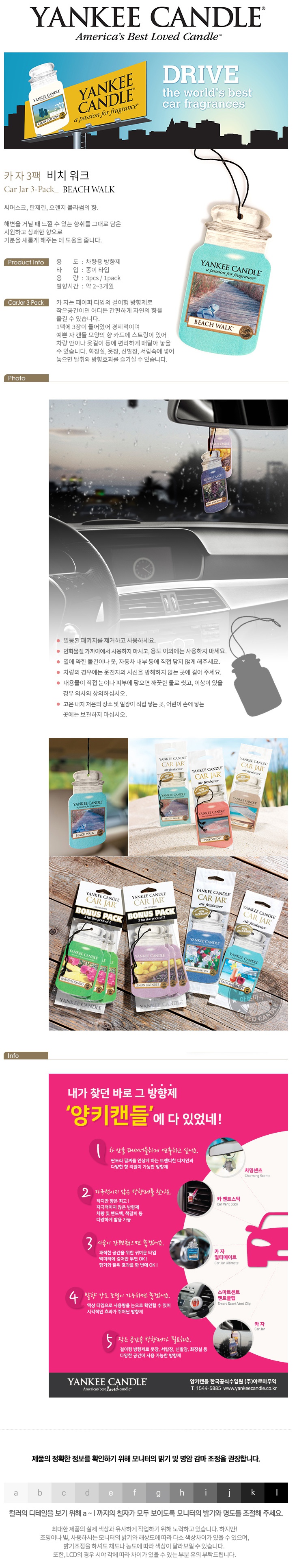 1팩에 3장이 들어있어 경제적이며, 예쁜 자 캔들 모양의 향 카드에 스트링이 있어 차량 안이나 옷걸이 등에 편리하게 매달아 놓을 수 있습니다.