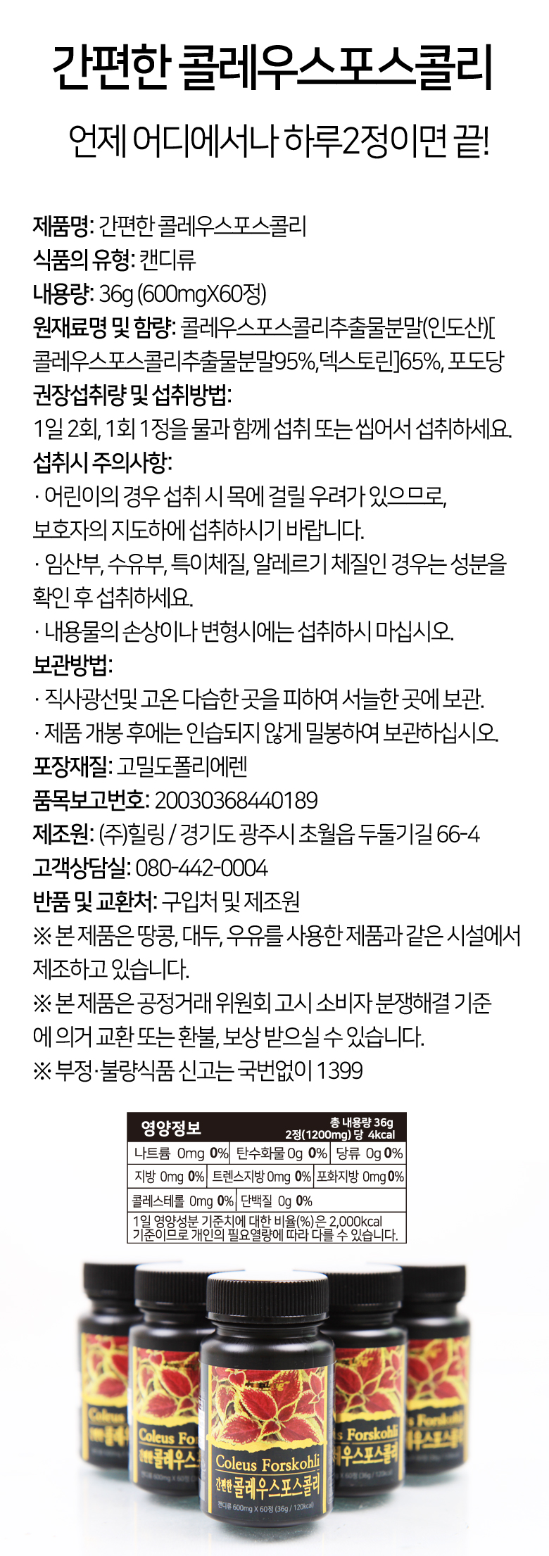 힐링 콜레우스포스콜리 36g(600mg x60 정)