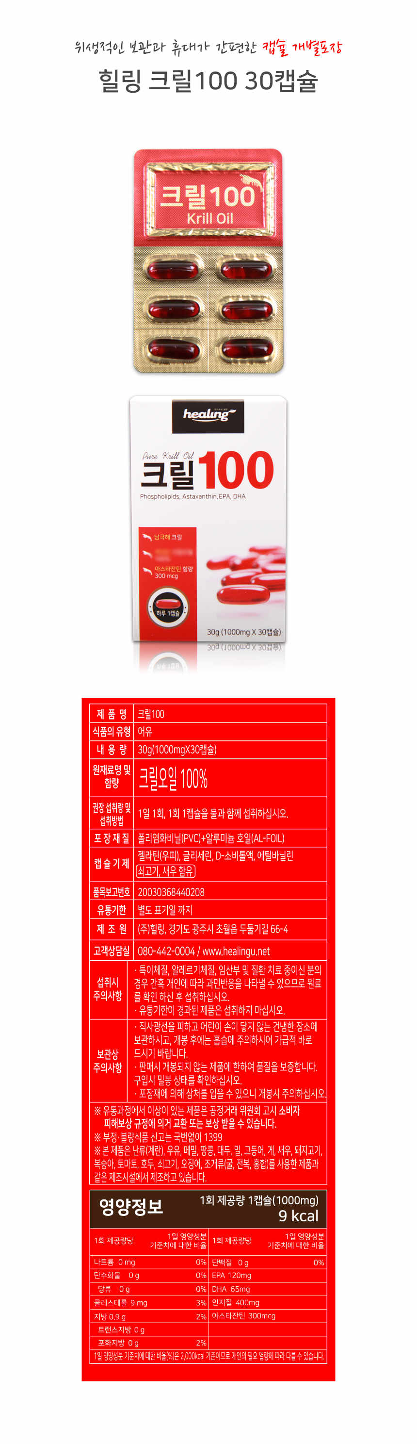 힐링 크릴100 크릴오일 1000ml 30캡슐