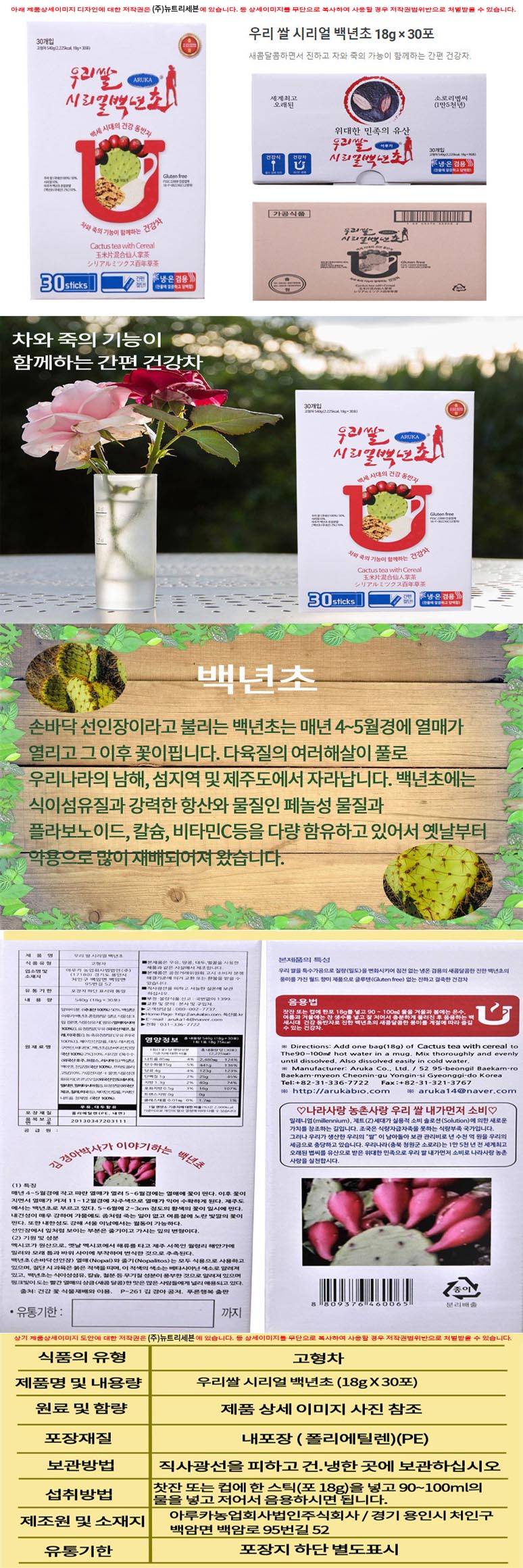우리쌀 시리얼 백년초 (18gX30포X2개)