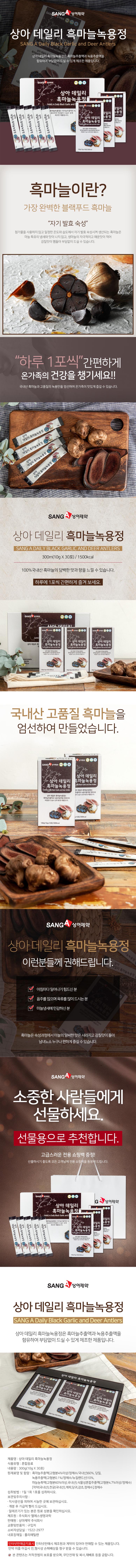 하루 1포씩 간편하게 온가족의 건강을 챙기세요. 국내산 흑마늘과 고품질의 녹용만을 엄선하여 온가족이 맛있게 즐길 수 있습니다.