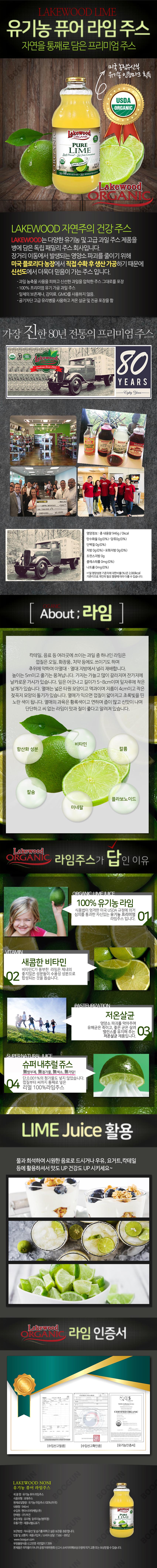 [레이크우드] 유기농 라임 압착쥬스 원액 (946ml)