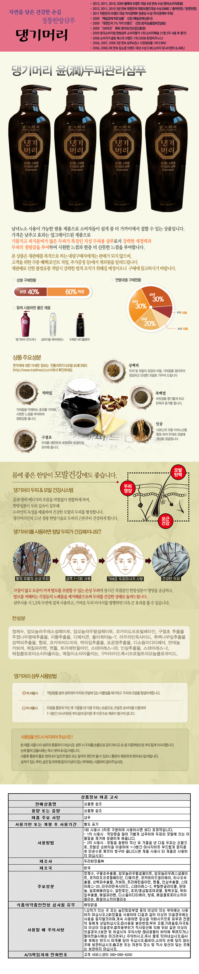 [댕기머리] 윤 스페셜 두피관리 샴푸 500ml x 4ea
