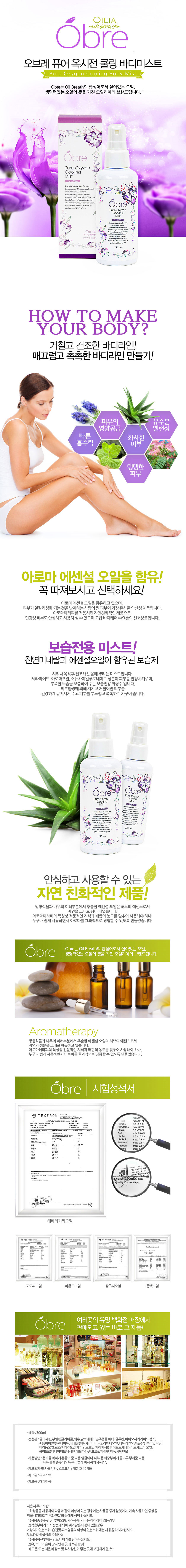 [오일리아]오브레 퓨어 옥시전 쿨링 바디미스트 150ml/OBD011