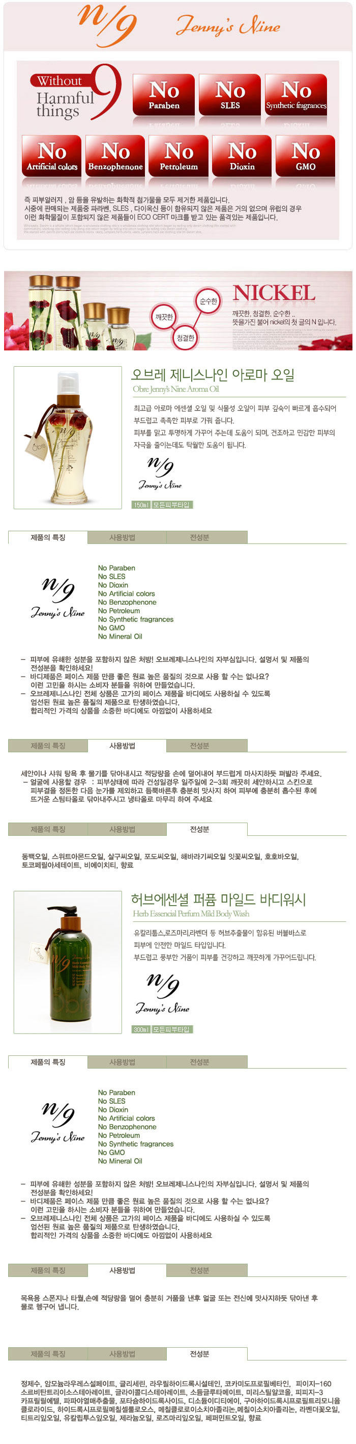 [오브레 제니스나인] 오일2종 JNSP12