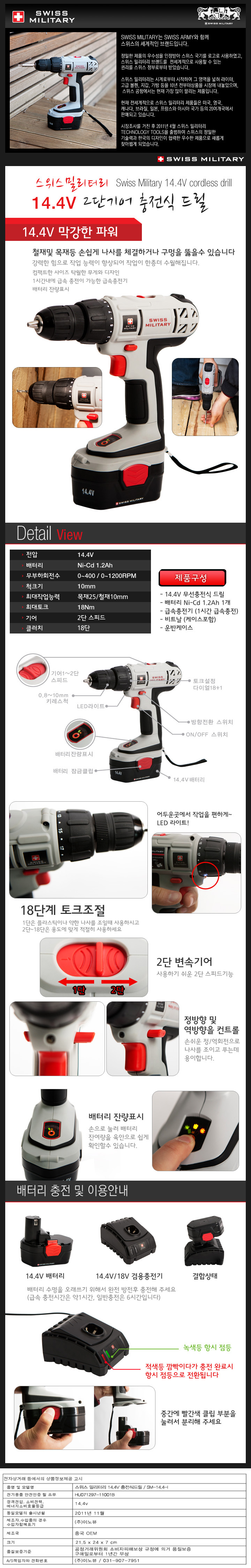 [스위스 밀리터리] 14.4V 충전식 드릴-SM-14.4-I