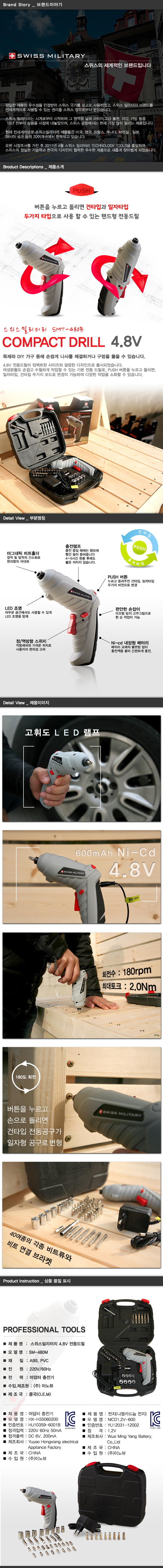 [스위스 밀리터리] 4.8V 전동드릴[저가형]/SM-480M