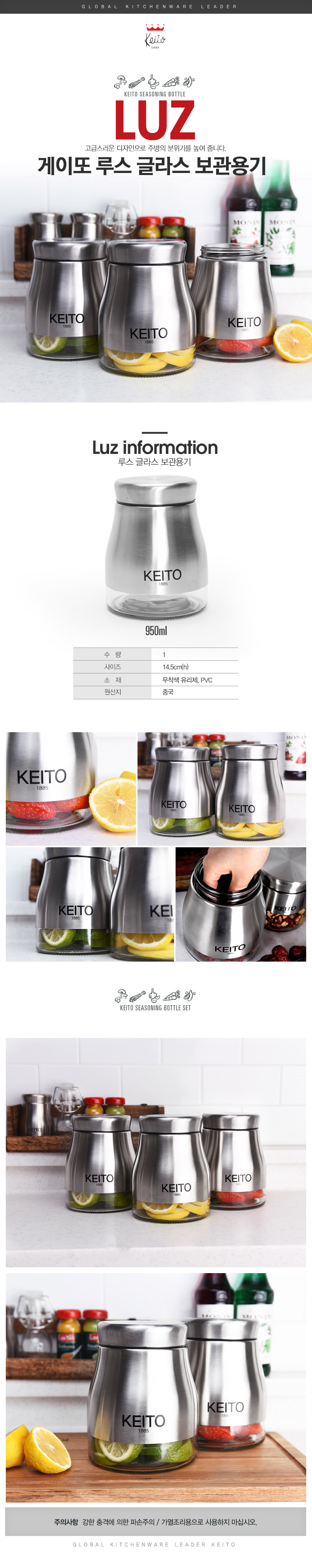 [게이또] 루스 글라스 보관용기 950ml