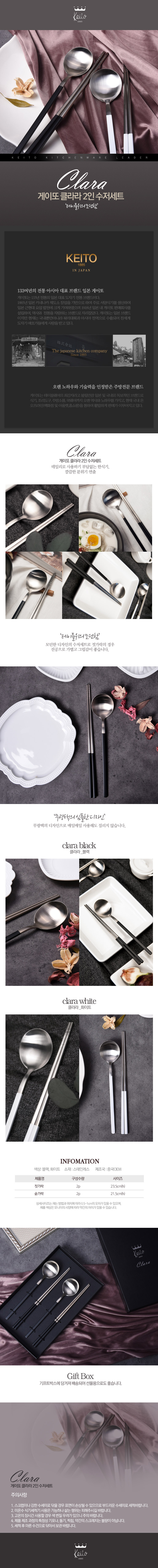[게이또] 클라라 2인 수저세트(컬러선택-블랙,화이트)
