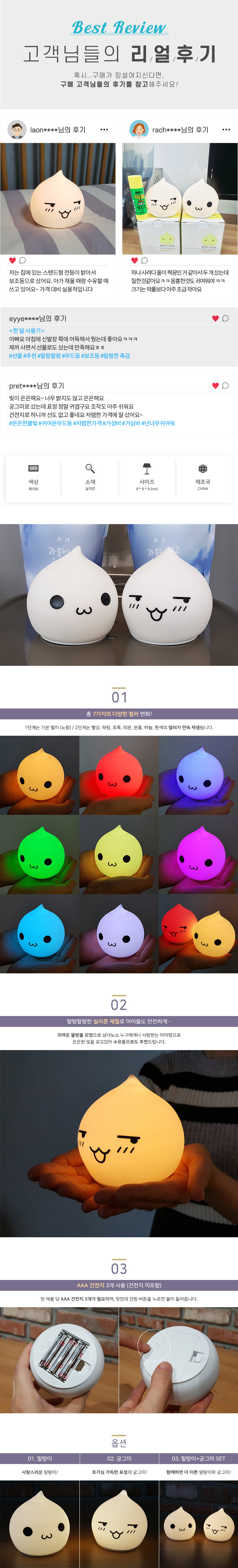 [반짝조명] LED 말랑말랑 물방울 무드등/수유등 (조명/전구)