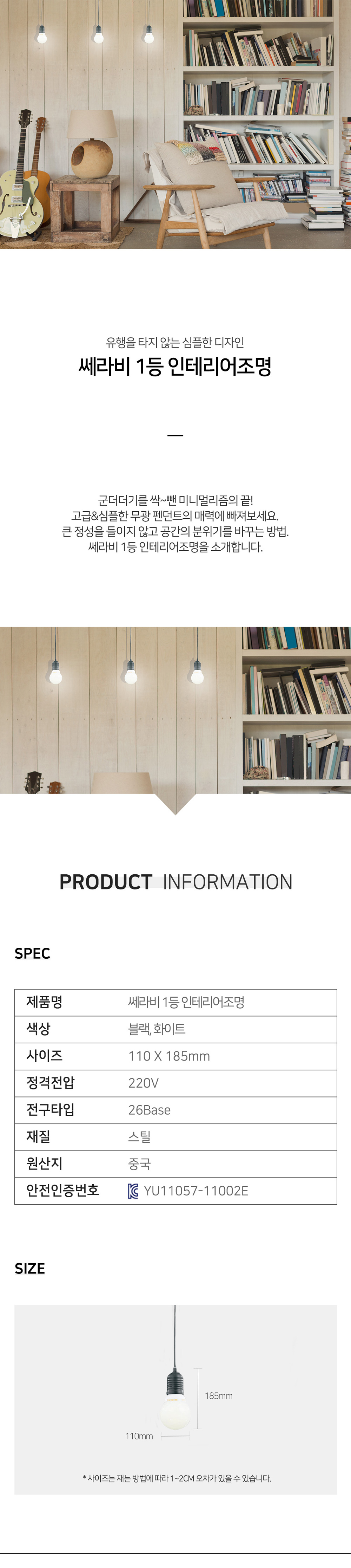 [반짝조명] 쎄라비 1등 인테리어조명 (조명/전구)