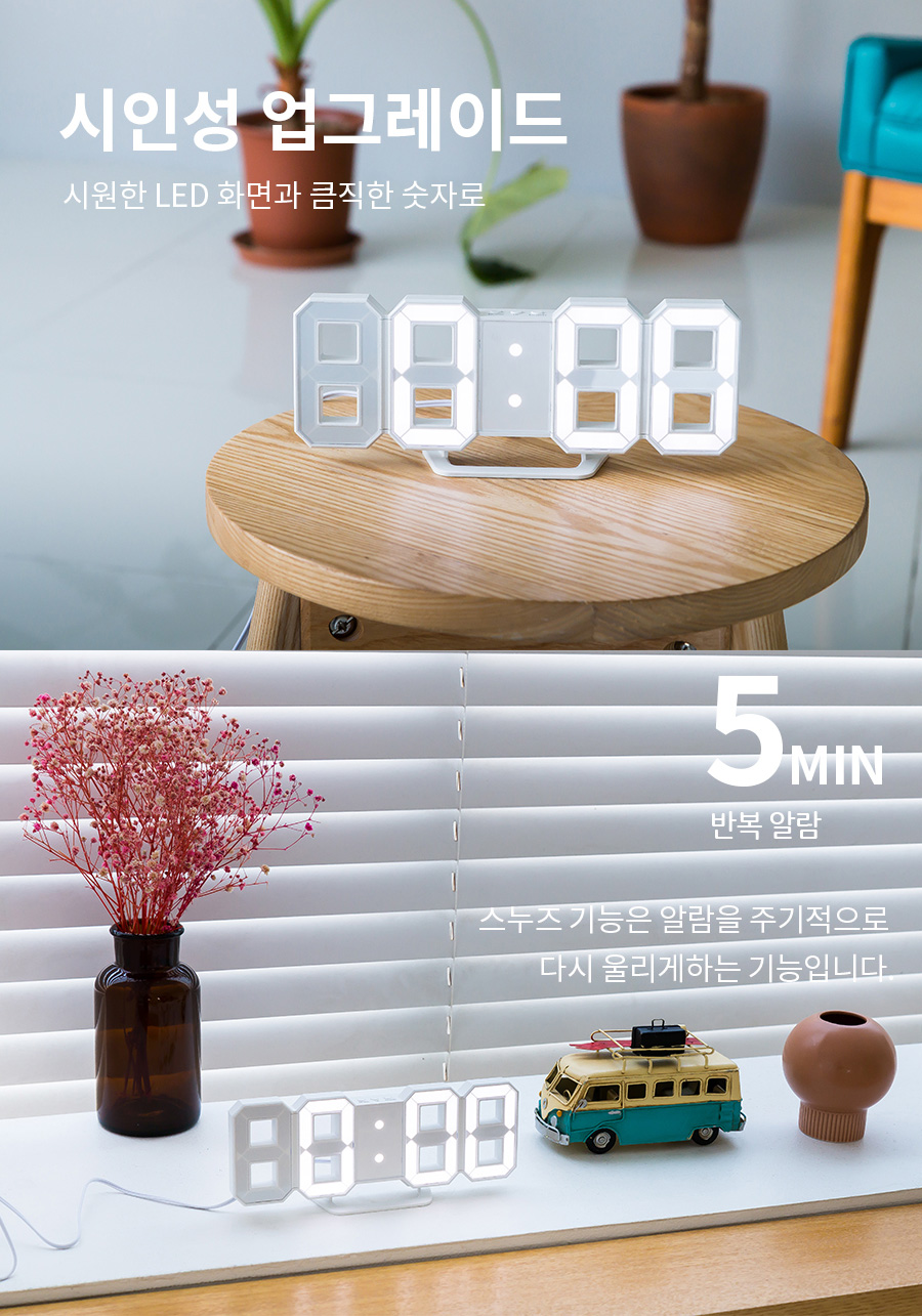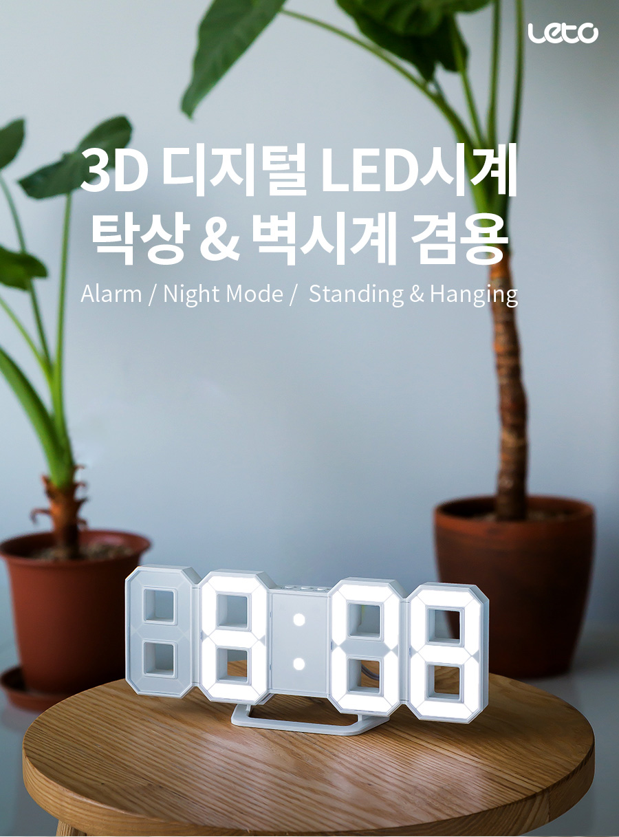 [레토] 무소음 디지털 3D LED 벽시계 알람 탁상시계 LLC-P03D (인테리어잡화)