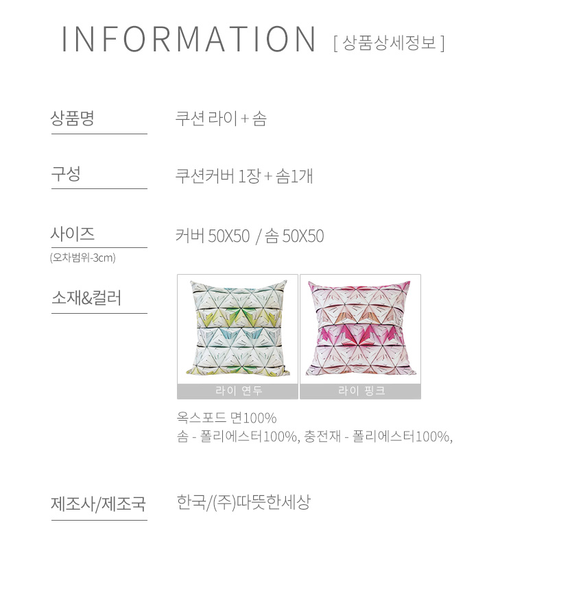 라이 옥스포드 쿠션(솜포함) (베게/쿠션/방석)