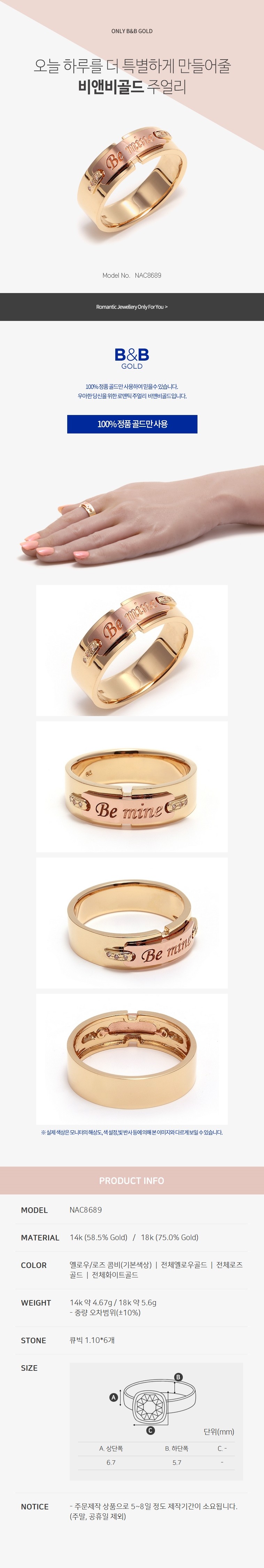 14K 반지 비마인 심플 여성반지 NAC8689 금반지 (반지)