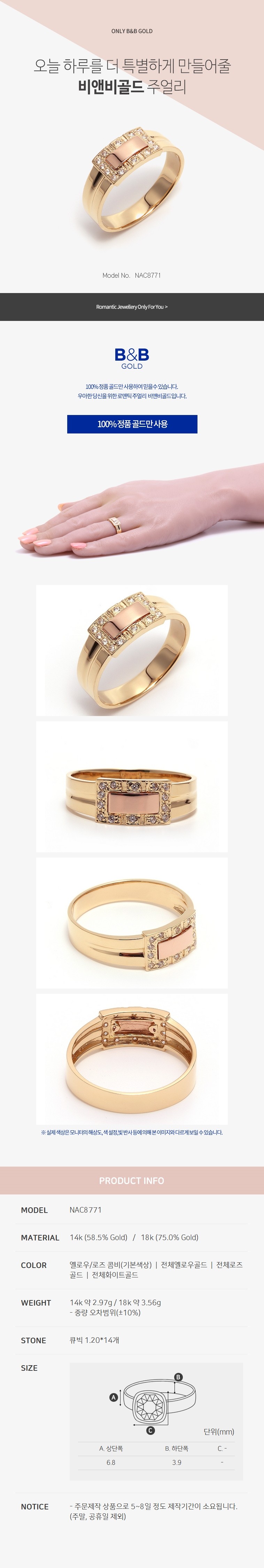 14K 반지 사각 큐빅 여성반지 NAC8771 금반지 (반지)