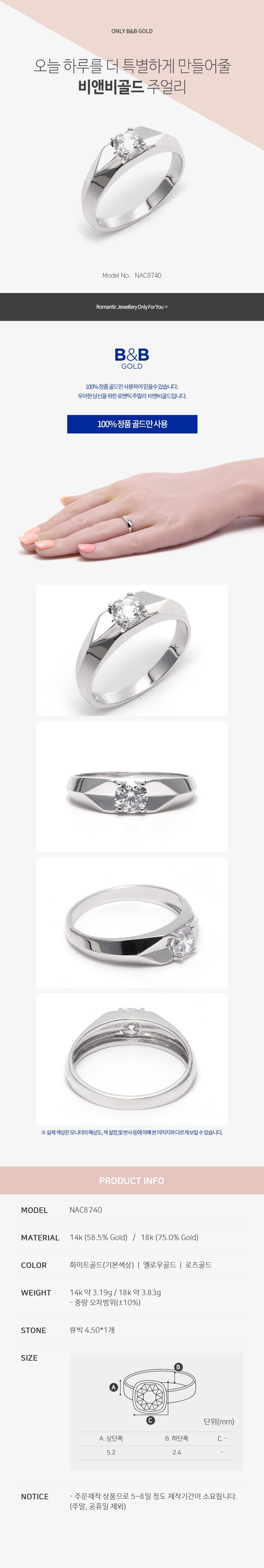 14K 반지 심플 남성반지 NAC8740 금반지 (반지)