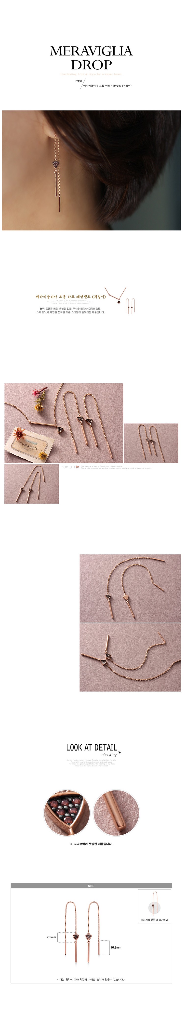 꼬냑큐빅,체인,드롭,귀걸이