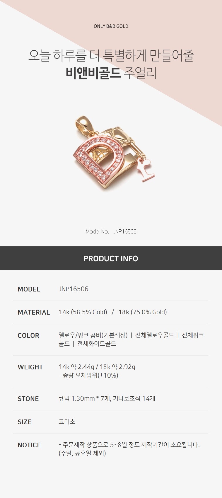 14K D 스퀘어 펜던트 JNP16506 (목걸이/펜던트/건강목걸이)