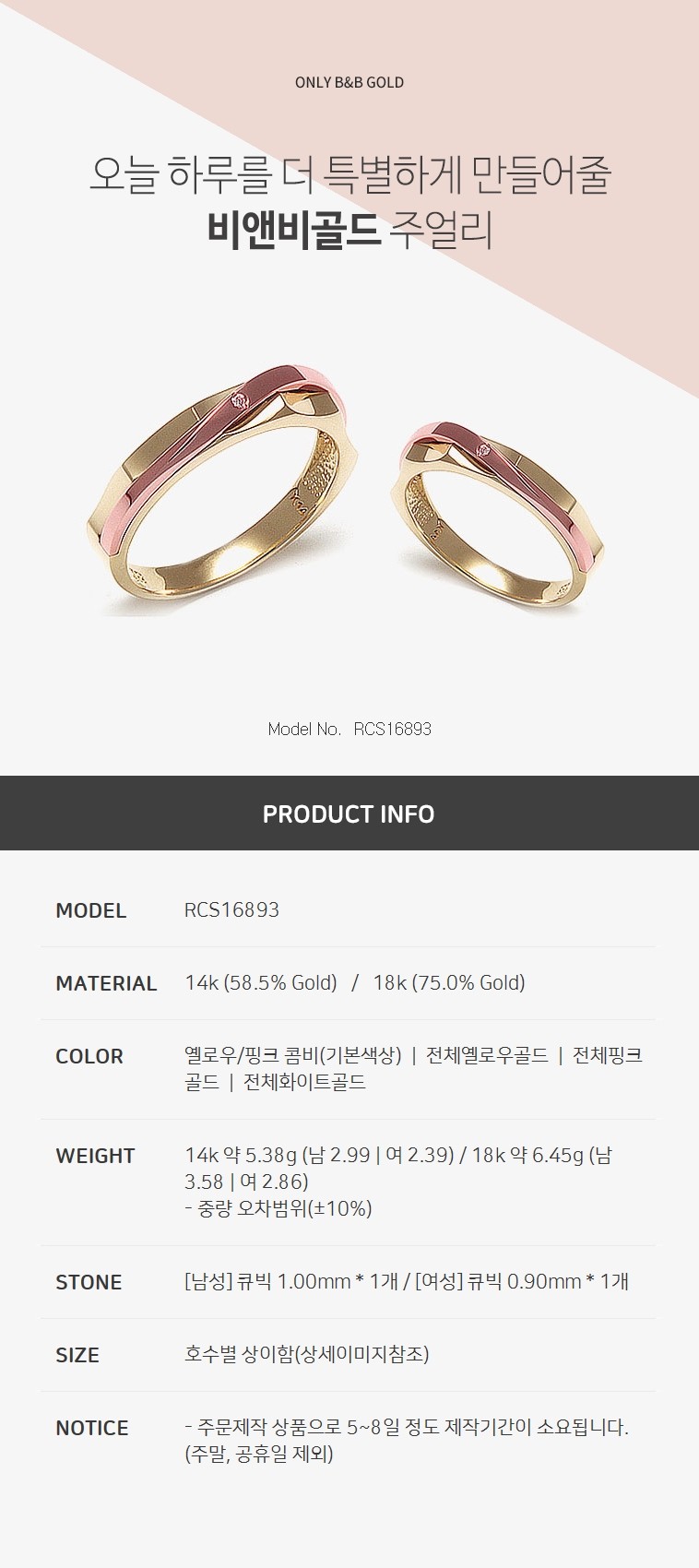 14K 콤비 한쌍커플링 RCS16893 (반지)