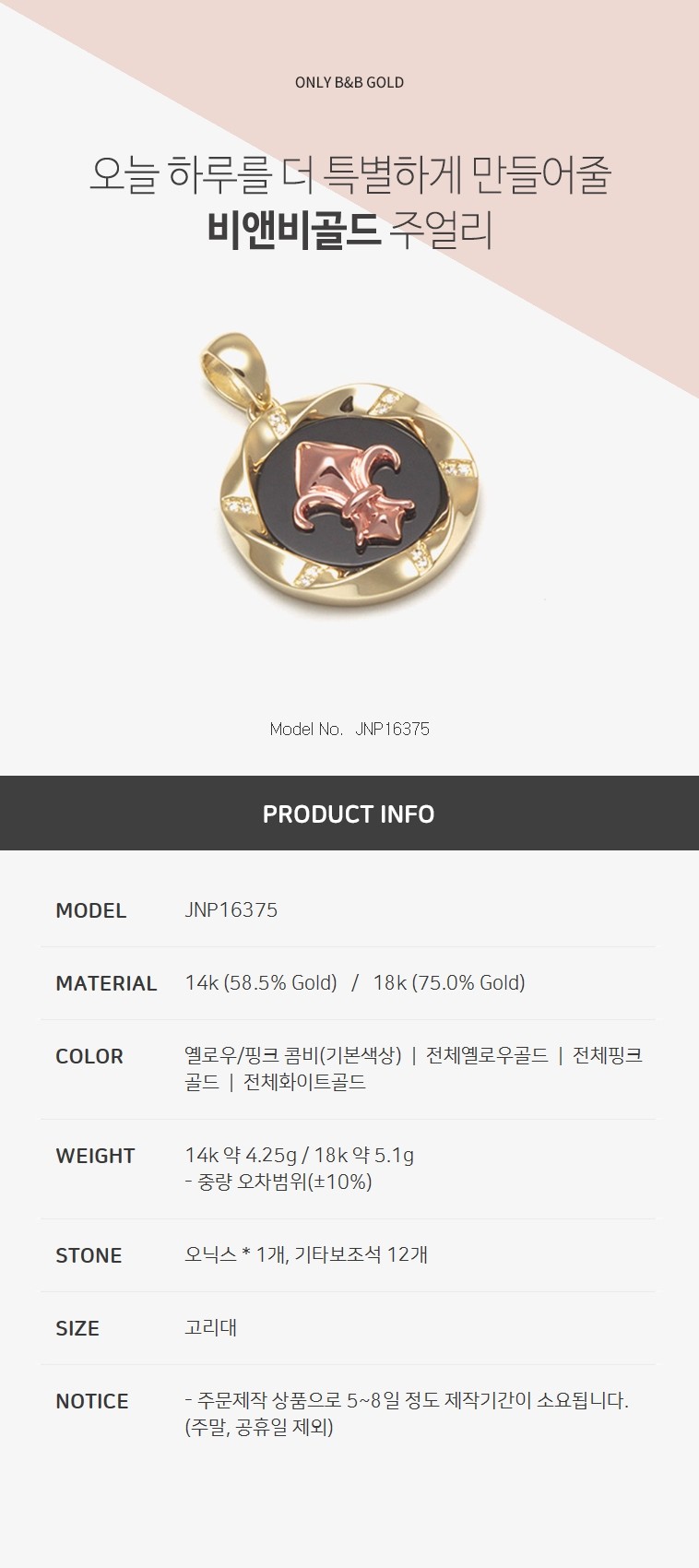 14K 오닉스 중세문양 펜던트 JNP16375 (목걸이/펜던트/건강목걸이)